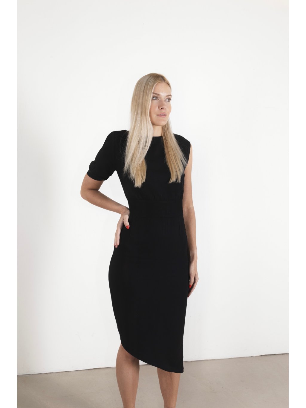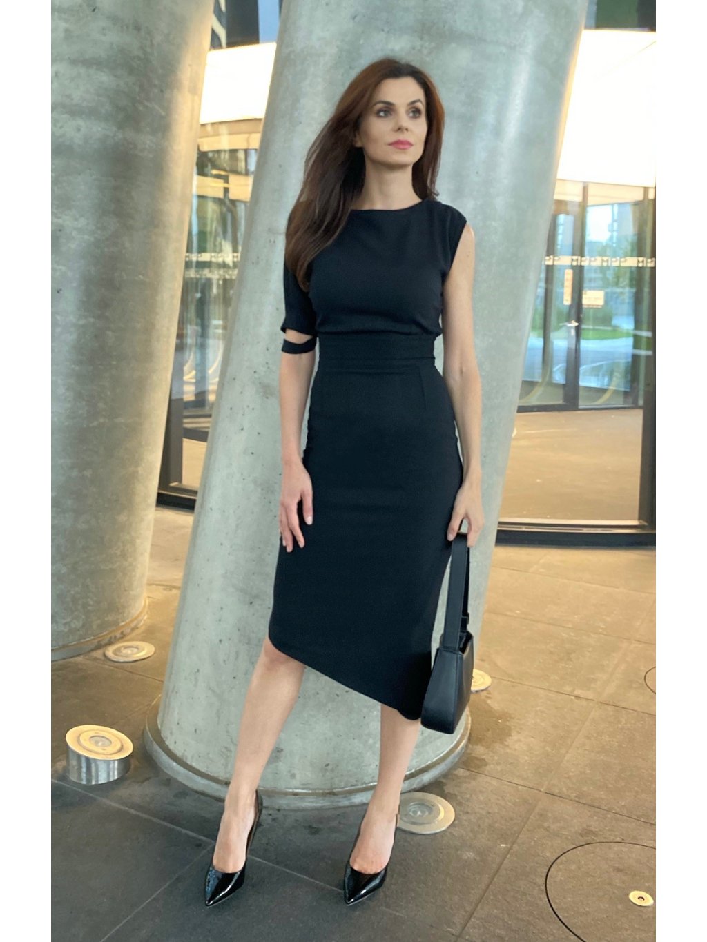 Představujeme pouzdrové šaty s asymetrickým střihem. Sukně s úhlopříčným střihem přidává šatům dynamiku a zajímavý pohyb. S těmito šaty si vytvoříte rafinovaný a originální vzhled, který zaujme na každé události.