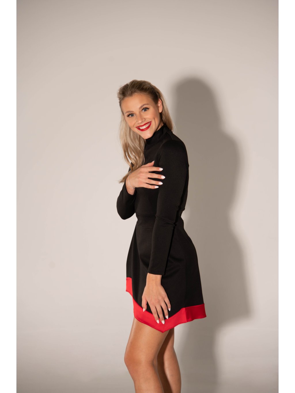 Černé šaty s červeným lemem