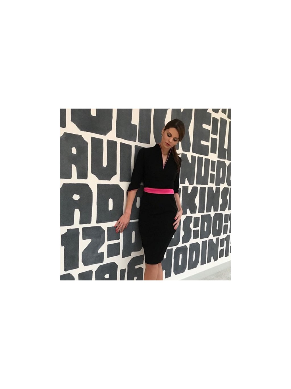 Černé šaty s ružovým páskem
