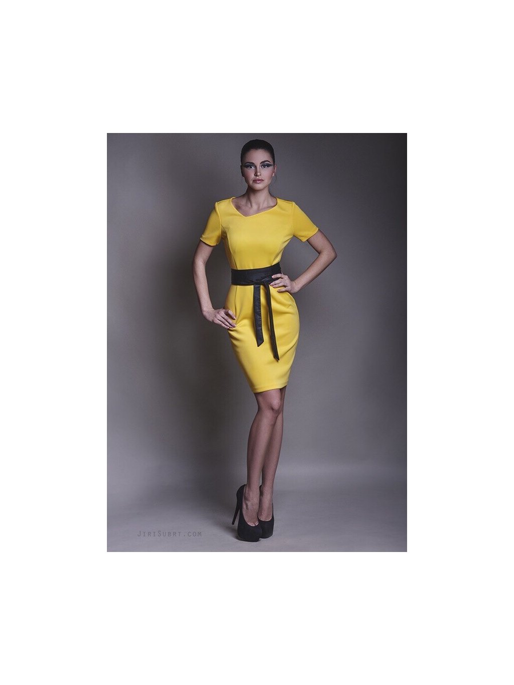 Naše elegantní pouzdrové šaty s krátkým rukávem a asymetrickým střihem jsou skvělou volbou pro vytvoření stylového a šarmantního vzhledu. Přidaný pás z eko kůže zvýrazní vaši postavu a dodá šatům výrazný detail. Tyto šaty jsou vyrobeny z kvalitního materiálu, který je nejen příjemný na nošení, ale také se pěkně přizpůsobí vašemu tělu. Krátké rukávy přidávají moderní a svěží vzhled, zatímco asymetrický střih dodává šatům originální a zajímavý prvek. Jsou ideální pro společenské události, večerní večírky nebo pracovní setkání.